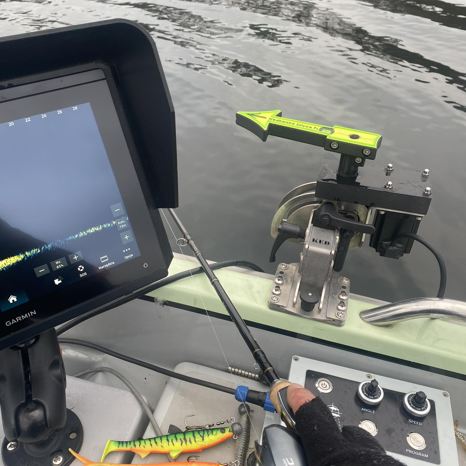 Target 360 używaj po obu stronach łodzi bez dodatkowej kombinacji. Przetwornik powinien być zawsze skierowany w stronę tyłu łodzi po podniesieniu z wody.