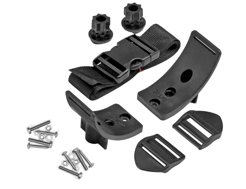 Zaprojektowany do montażu na dowolnej płaskiej powierzchni lub w systemie RAILBLAZA StarPort, uchwyt ten wykorzystuje mocne, stabilne w promieniowaniu UV paski i gumowe nóżki o dużej przyczepności, aby zapobiec zwijaniu się, grzechotaniu lub wodowaniu butelki podczas transportu.